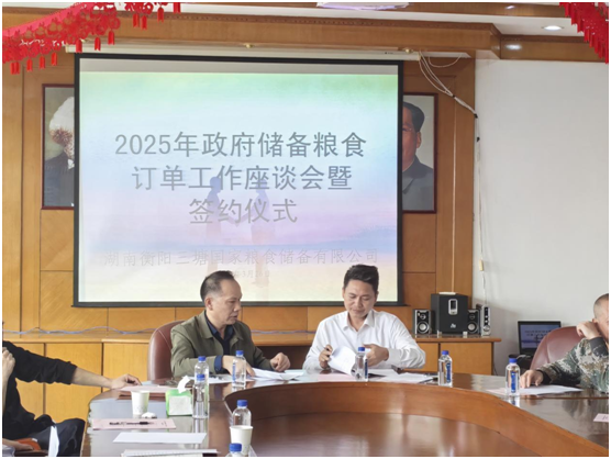 3月26日上午,衡糧集團(tuán)三塘子公司在三樓會(huì)議室組織召開(kāi)2025年政府儲(chǔ)備糧食訂單工作座談會(huì),邀請(qǐng)了衡南縣、衡陽(yáng)縣等周邊稻谷實(shí)際種植者代表參加洽談并現(xiàn)場(chǎng)簽約。衡陽(yáng)市發(fā)改委調(diào)控科科長(zhǎng)萬(wàn)秋香、副科長(zhǎng)周鐵鋼,衡糧集團(tuán)黨委副書(shū)記、總經(jīng)理劉光蘭等出席會(huì)議,副總經(jīng)理尹培劍主持會(huì)議,三塘公司中層以上干部參加會(huì)議。